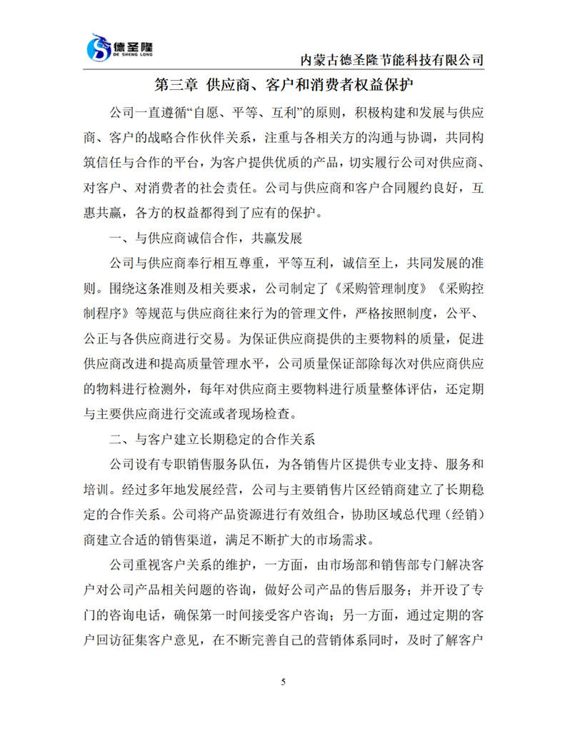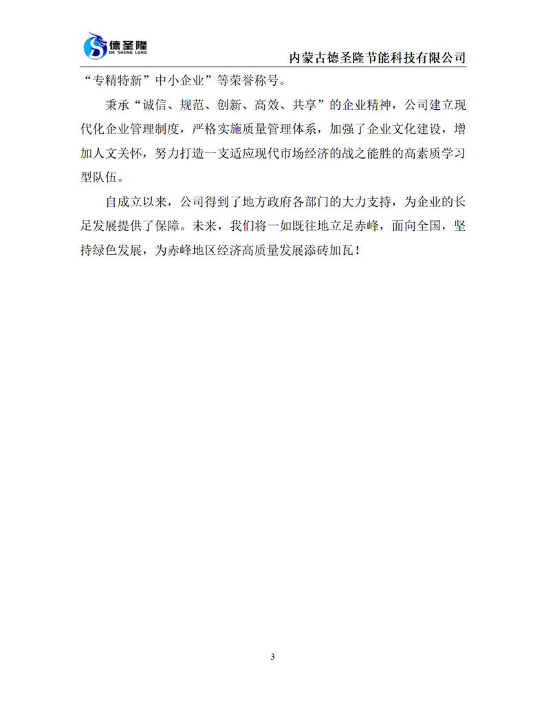 內蒙古德圣隆節能科技有限公司始終踐行“誠信立業、科技興企、質量為本、安全為天”的經營理念,堅持“以客戶為中心,以奮斗者為本”的宗旨,以“讓天更藍、水更綠,居住更安全,生活更溫暖”為使命,努力實現“打造百年品牌。